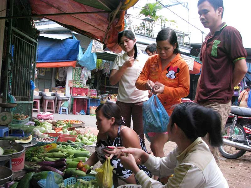 Nhiều khảo sát chỉ ra rằng thu nhập của công nhân ở TP.HCM phần lớn chi cho lương thực, thực phẩm. Ảnh: PHONG ĐIỀN