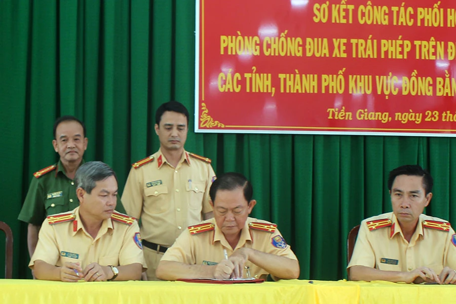 Tại hội nghị, thêm ba địa phương ký kết kế hoạch phối hợp phòng chống đua xe trái phép. Như vậy, tất cả 13 tỉnh, thành khu vực ĐBSCL đã tham gia vào kế hoạch này để tiến tới triệt xóa nạn này.•