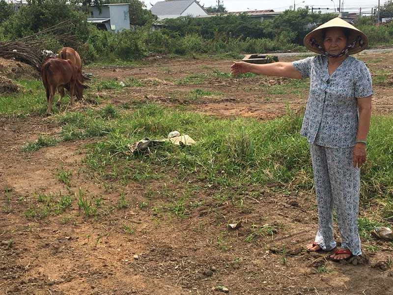 Bà Bé và diện tích đất đã bị thu hồi. Ảnh: KT