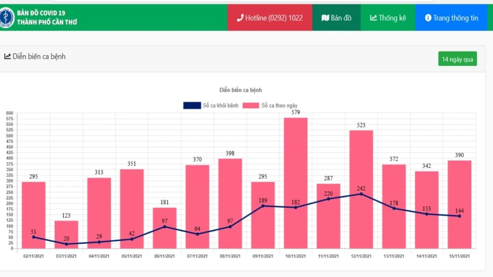 Ngày 15-11, Cần Thơ có thêm 390 ca nhiễm COVID-19, trong đó có 204 ca trong khu cách ly và cách ly tại nhà, 43 ca trong khu phong tỏa, 143 ca qua xét nghiệm sàng lọc tại cơ sở y tế và cộng đồng; thêm 144 ca được điều trị khỏi và hai ca tử vong.
