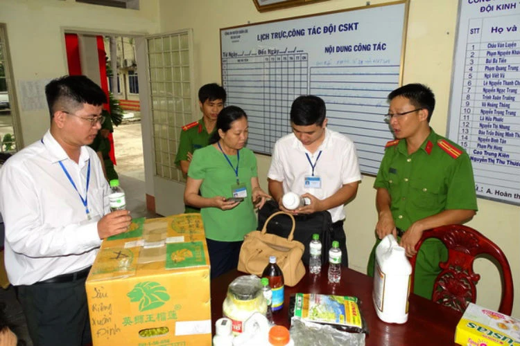 Theo lực lượng kiểm tra liên ngành giữa Chi cục An toàn vệ sinh thực phẩm (Sở Y tế) với Chi cục Quản lý chất lượng nông lâm sản và thủy sản (Sở Nông nghiệp và Phát triển nông thôn tỉnh), số sản phẩm nghi là hóa chất có in chữ nước ngoài và không in chữ trên bao bì đều không được phép sử dụng tại Việt Nam.