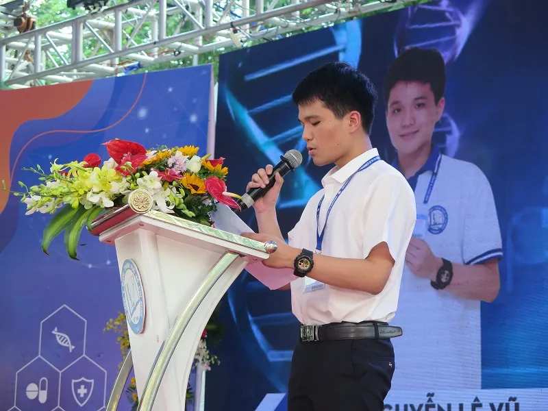 Thủ khoa Nguyễn Lê Vũ đọc phát biểu tại buổi lễ
