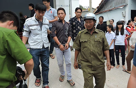 Huỳnh Trung Thoại đang bị dẫn giải về trụ sở công an. Ảnh: TK