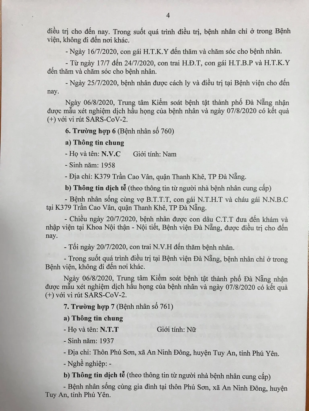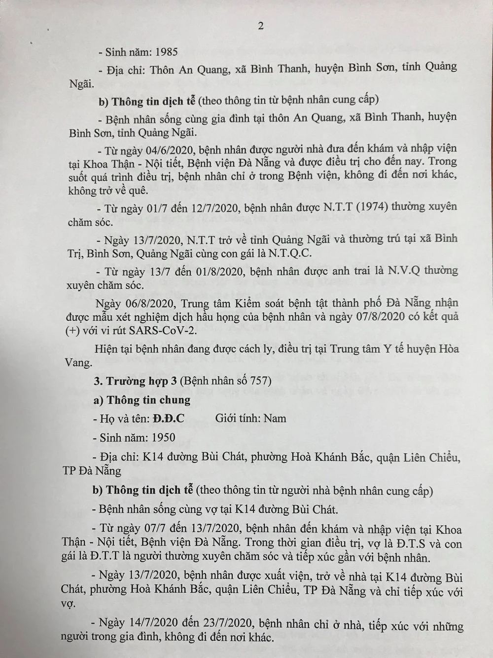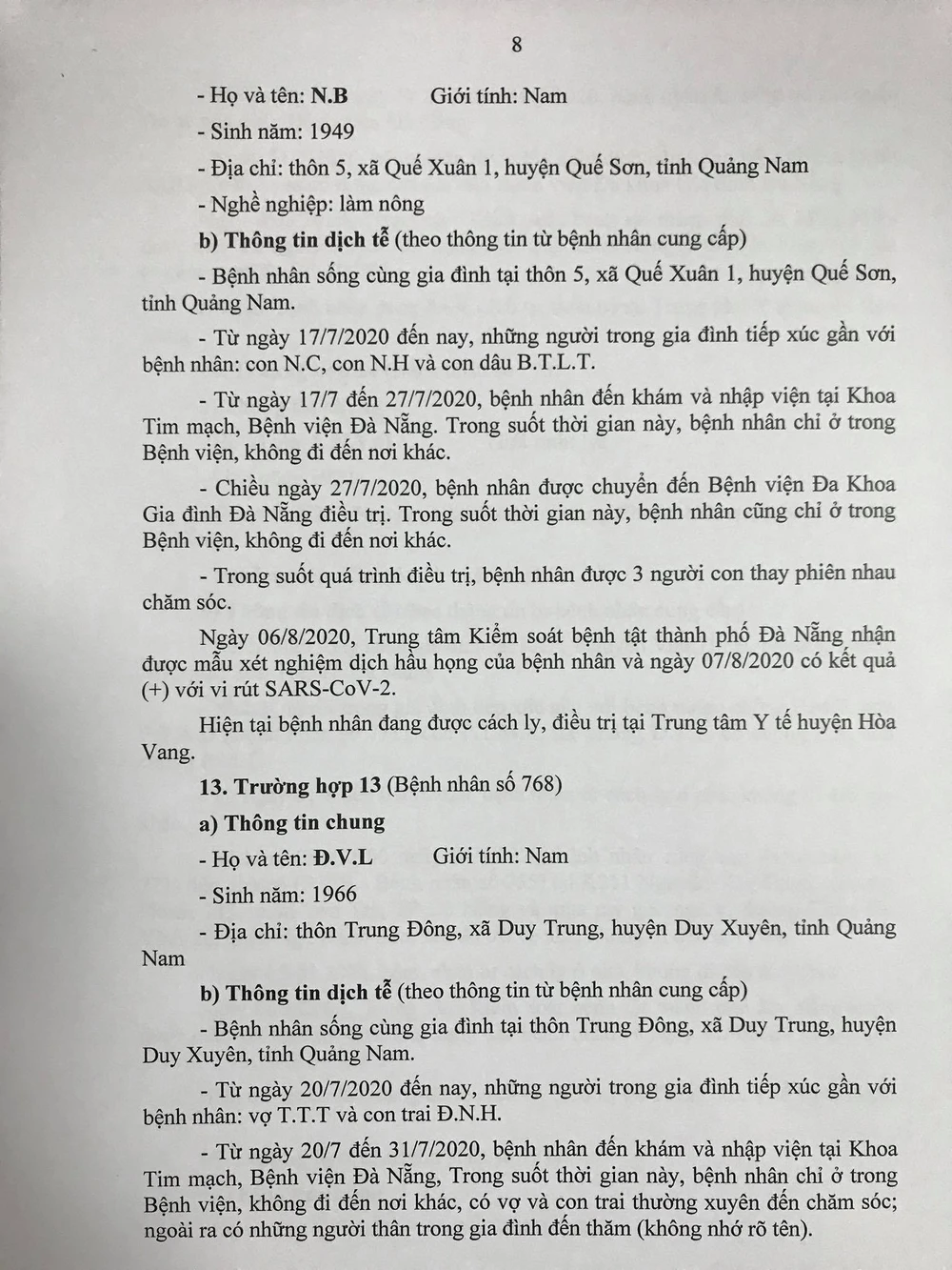 Chiều 8-8, Ban chỉ đạo Phòng chống dịch COVID-19 TP Đà Nẵng cung cấp thông tin về kết quả điều tra, giám sát, xử lý đối với 15/22 trường hợp bệnh nhân mắc COVID-19 tại TP được công bố ngày 7-8, và đính chính, bổ sung thông tin ca bệnh số 741.