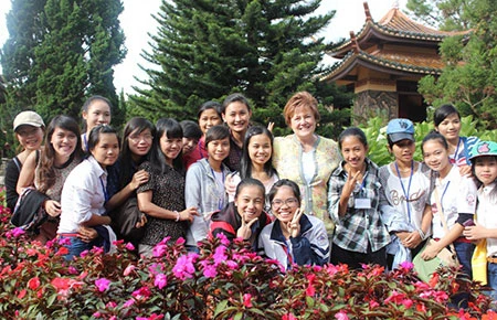 Các em nhận học bổng của quỹ vui chơi tại Đà Lạt cùng bà Robin, một nhà tài trợ luôn theo sát cuộc sống của các em. (Ảnh tư liệu)