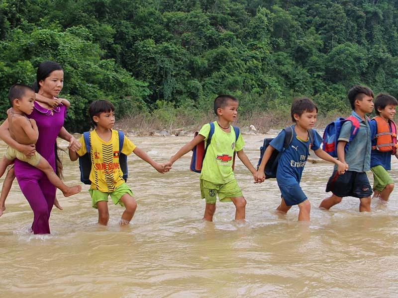 Em Vi Văn Tân, học sinh lớp 4, cho biết: “Nhà em ở sau núi cách trường 4 km nên mỗi ngày em đến trường thường phải dậy từ 5 giờ sáng. Vì để đến trường em phải leo qua mấy quả núi bằng đường mòn, rồi lội sông, có hôm lũ lớn em không qua chỉ biết đứng khóc. Có hôm về nhà không muốn đi học nữa vì đi học mà khổ quá. Nhưng các thầy cô, bố mẹ cứ bảo học kiếm cái chữ mới hết khổ nên em đi học lại. Em cũng không biết ước mơ của em là gì nữa, chỉ mong bản em có một cây cầu là được rồi”.
