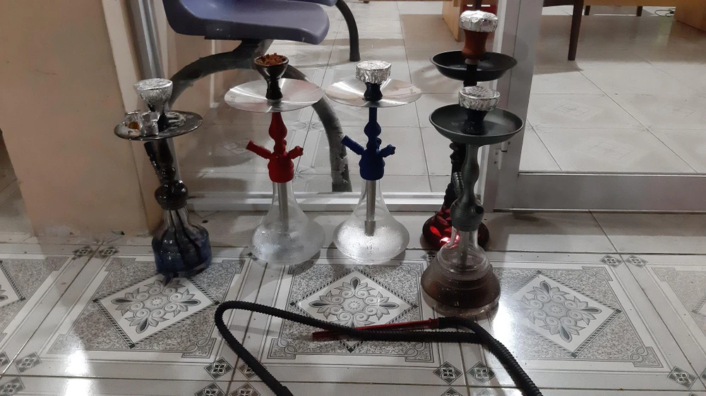 Dụng cụ sử dụng shisha trong tiệc ngoài trời của nhóm du khách