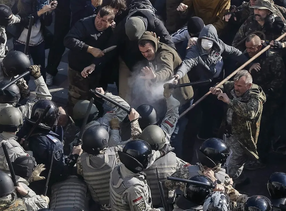 Những người ủng hộ chủ nghĩa dân tộc Svoboda tại Kiev đụng độ với cảnh sát bên ngoài tòa nhà quốc hội Ukraine (Ảnh: Reuters)
