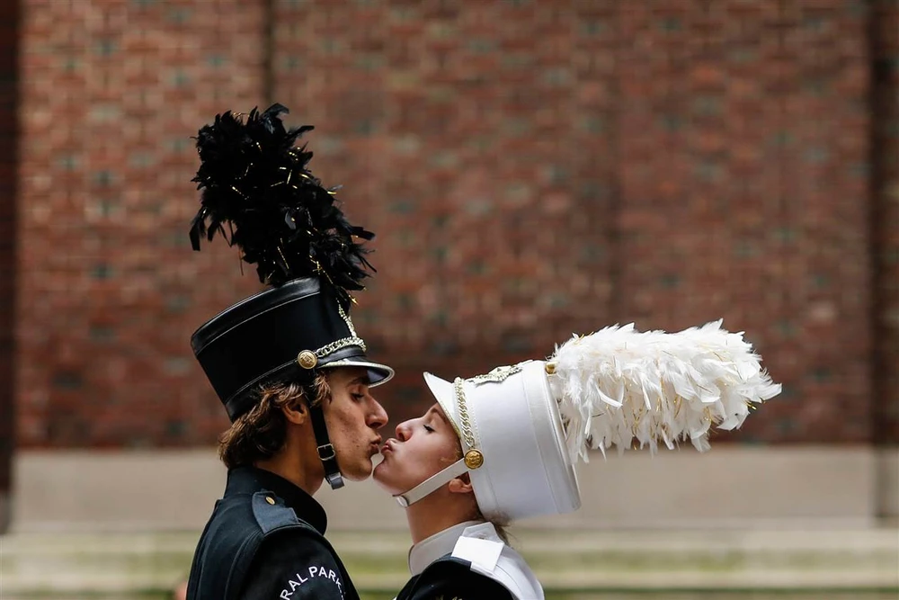 Nụ hôn của những người diễu hành mừng ngày Colombus tìm ra Châu Mỹ tại Newyork hôm 13-10. (Ảnh: Reuters)