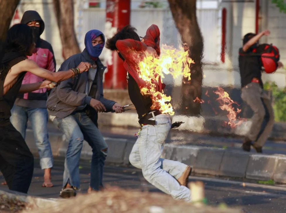 1. Người biểu tình tại Indonesia “bốc hỏa” sau khi ném bom xăng phản đối quyết địng tăng giá xăng dầu của chính phủ (Ảnh: Reuters)