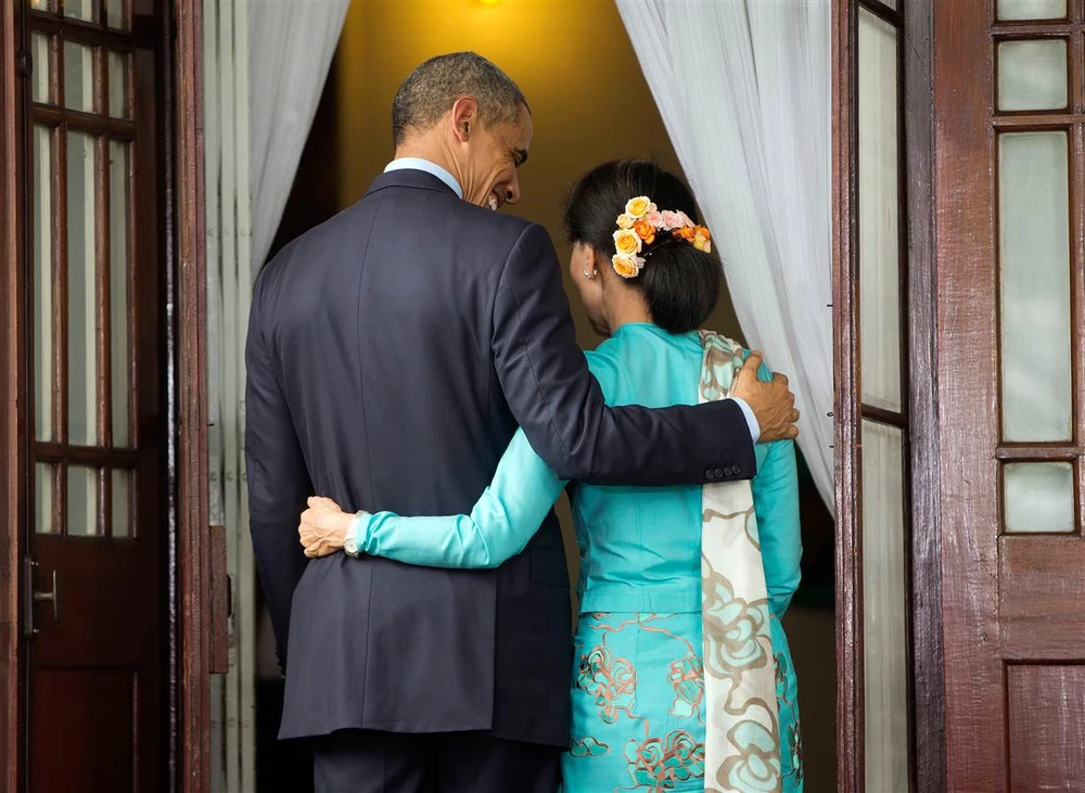11. Tổng thống Mỹ Obama và Nghị sĩ đảng Dân chủ tại Myanmar Aung San Suu Kyi “tay trong tay” thân mật bên lề Hội nghị tại Yangon, Myanmar (AP).