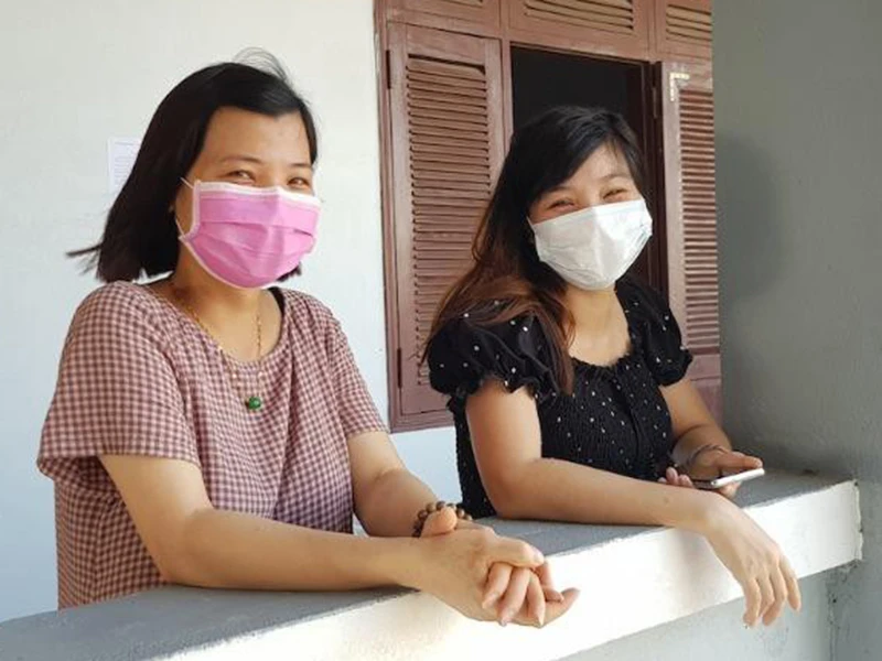 Các bà bầu vui vẻ khi được chăm lo chu đáo trong khu cách ly ở Quảng Nam. Ảnh: THANH NHẬT