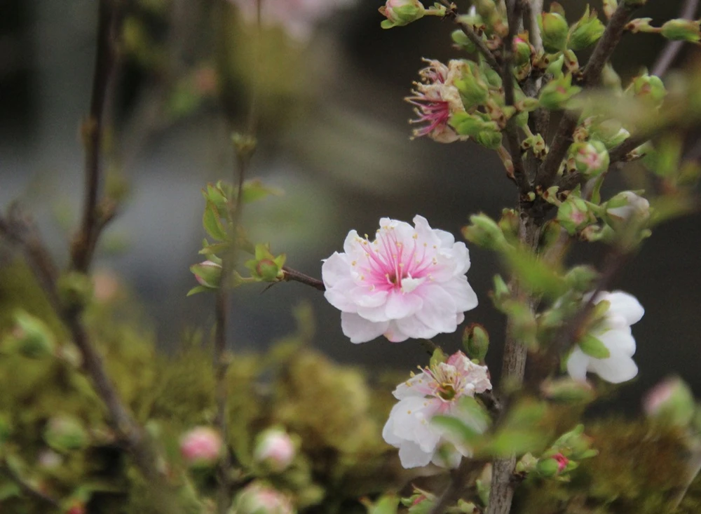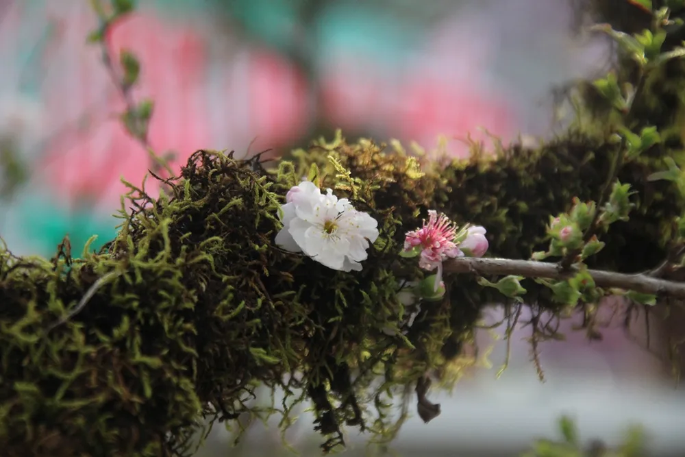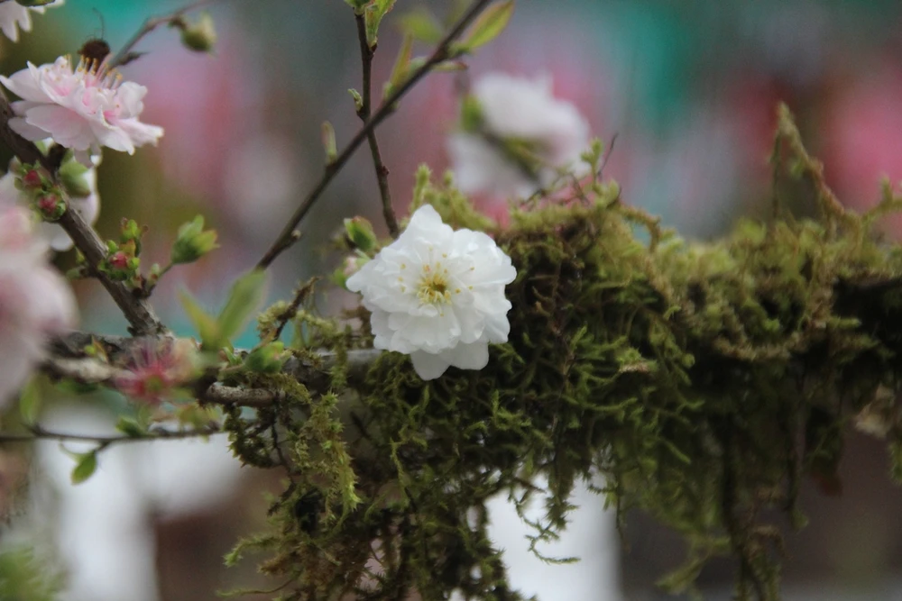 Loài hoa này chỉ khoe sắc một lần trong năm, màu hoa trắng tinh khiết, thân cây mộc mạc rêu phong rất hút người chơi.
