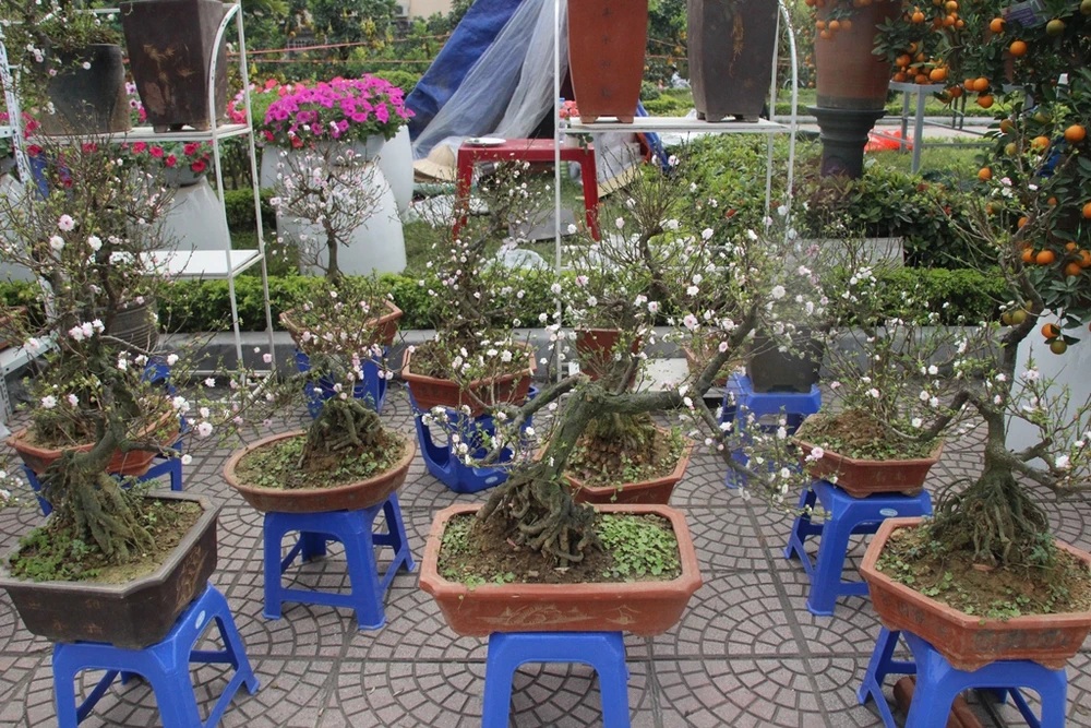 Loài mai trắng đổ bộ về Hà Nội khiến nhiều người không khỏi ngỡ ngàng. Đặc biệt, người dân còn choáng váng hơn với giá của mỗi chậu mai.