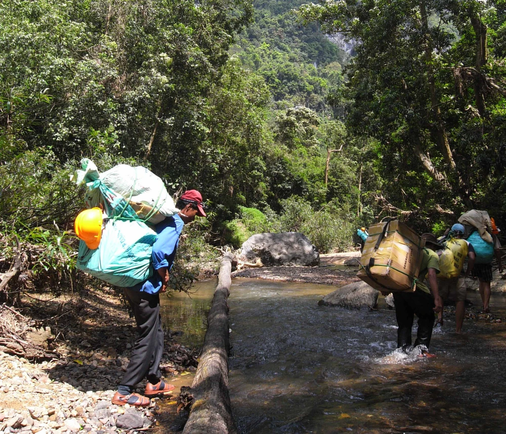 Các porter gùi hàng phục vụ vào Sơn Đoòng.