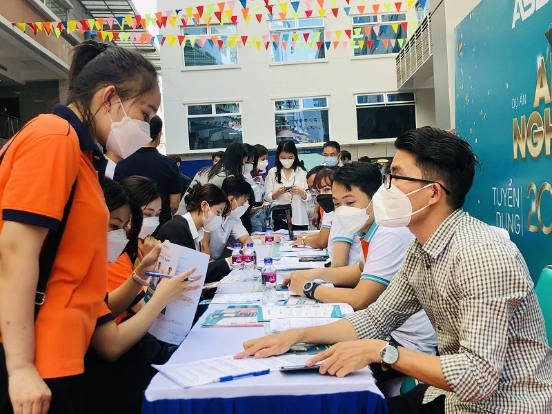 Gần 40 doanh nghiệp tham gia tuyển dụng, trong đó có 24 doanh nghiệp tham gia phỏng vấn trực tiếp tại Chương trình “Ngày Hội việc làm 2022, Khối ngành Kinh tế - Tài chính - Thương mại - Ngân hàng" do Trường Đại học Công nghệ TP.HCM (HUTECH), tổ chức ngày 19-3.