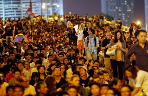 Đúng như dự đoán, khoảng 8 giờ tối (giờ Hong Kong), số lượng người biểu tình quy tụ về Harcourt Road, gần khu vực tòa nhà chính phủ liên tục tăng cao. Đến khoảng 10 giờ thì số người biểu tình ước tính đã đạt mốc 10.000 người.