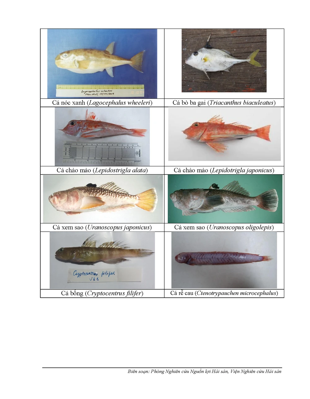 Dưới đây là danh sách 154 loại hải sản tầng đáy thường gặp ở vùng biển từ Hà Tĩnh, Quảng Bình, Quảng Trị, Thừa Thiên-Huế chưa đủ an toàn của Viện nghiên cứu hải sản.