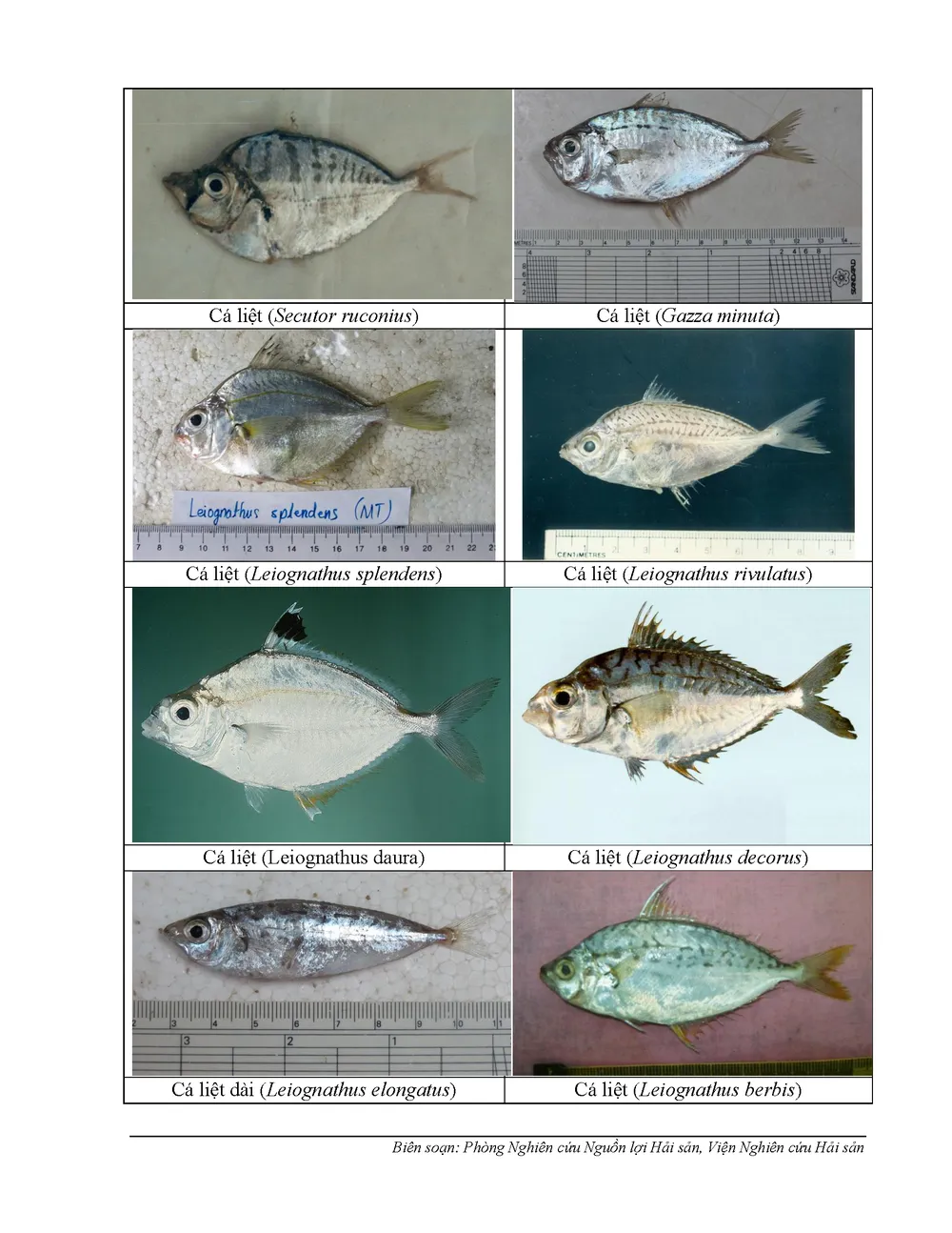 Dưới đây là danh sách 154 loại hải sản tầng đáy thường gặp ở vùng biển từ Hà Tĩnh, Quảng Bình, Quảng Trị, Thừa Thiên-Huế chưa đủ an toàn của Viện nghiên cứu hải sản.