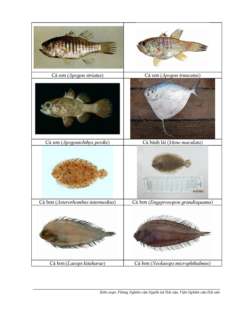 Dưới đây là danh sách 154 loại hải sản tầng đáy thường gặp ở vùng biển từ Hà Tĩnh, Quảng Bình, Quảng Trị, Thừa Thiên-Huế chưa đủ an toàn của Viện nghiên cứu hải sản.