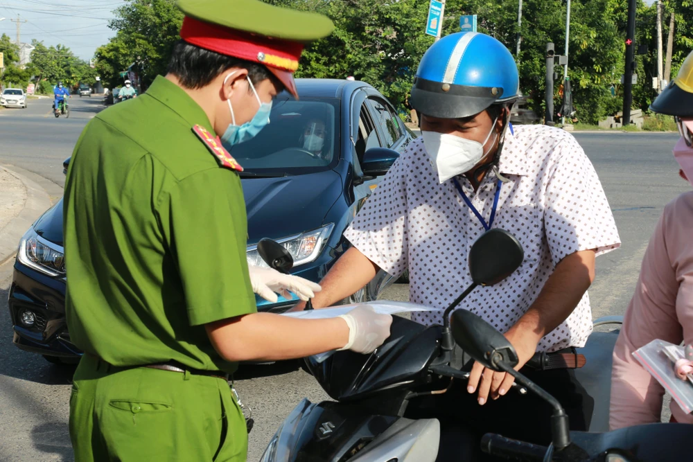 Công an Phan Thiết kiểm tra người đi đường ở 1 chốt kiểm soát