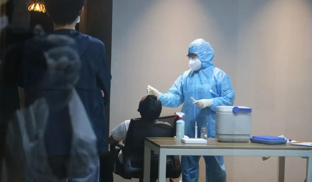 Người ở tòa nhà số 1 Hoàng Việt, quận Tân Bình đang được xét nghiệm COVID-19. Ảnh: Khánh Chi