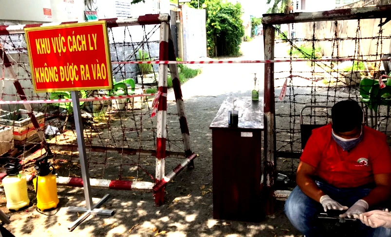 Một điểm phong tỏa trên địa bàn xã Tân Xuân, Hóc Môn. Ảnh: TRẦN NGỌC