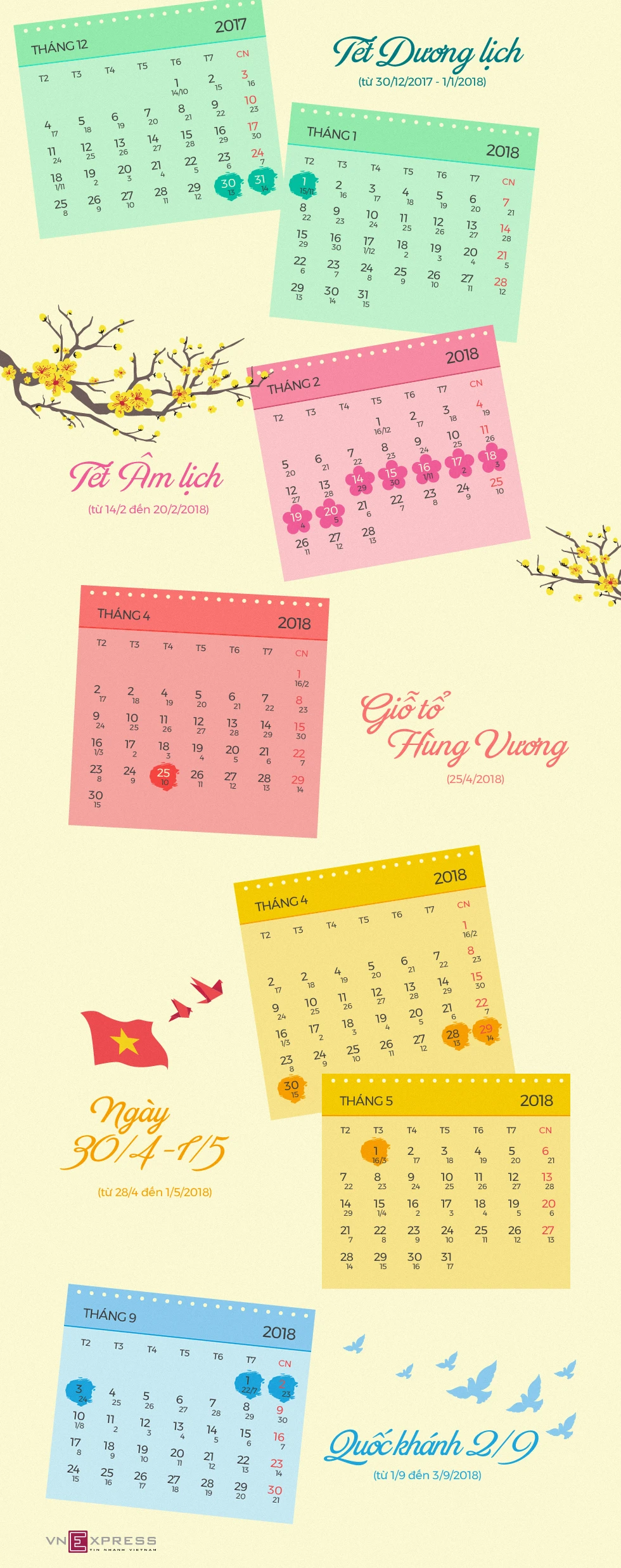 16 ngày nghỉ dịp lễ, Tết năm 2018