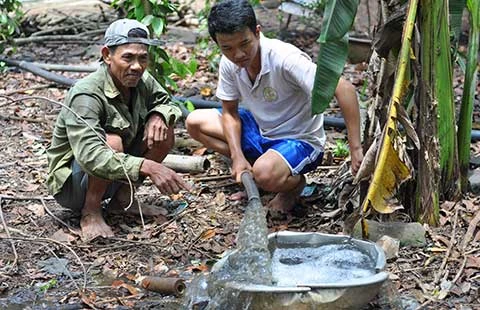 Theo ông Phạm Văn Hùng (60 tuổi, ấp Hưng Thạnh), nguồn nước ngầm sinh hoạt ở khu vực này bị ảnh hưởng nghiêm trọng. “Gia đình tôi ở gần một trang trại heo. Năm 2013, tôi khoan giếng sâu 90 m. Lúc đầu nước rất trong nhưng được một năm thì nước có màu đen, bốc mùi hôi thối như ở nước cống. Gia đình tôi có hai giếng cách nhau 20 m đều có chung tình trạng này. Tôi phản ánh chủ trại thì họ chấp nhận đền cho giếng khác. Giếng mới sâu 70 m nhưng nước vẫn đục, có mùi tanh. Vì vậy gia đình tôi chỉ dùng nước giếng này để tưới, còn ăn, uống và tắm giặt thì mua nước đóng chai hoặc xin ở nơi khác” - ông Hùng bức xúc.
