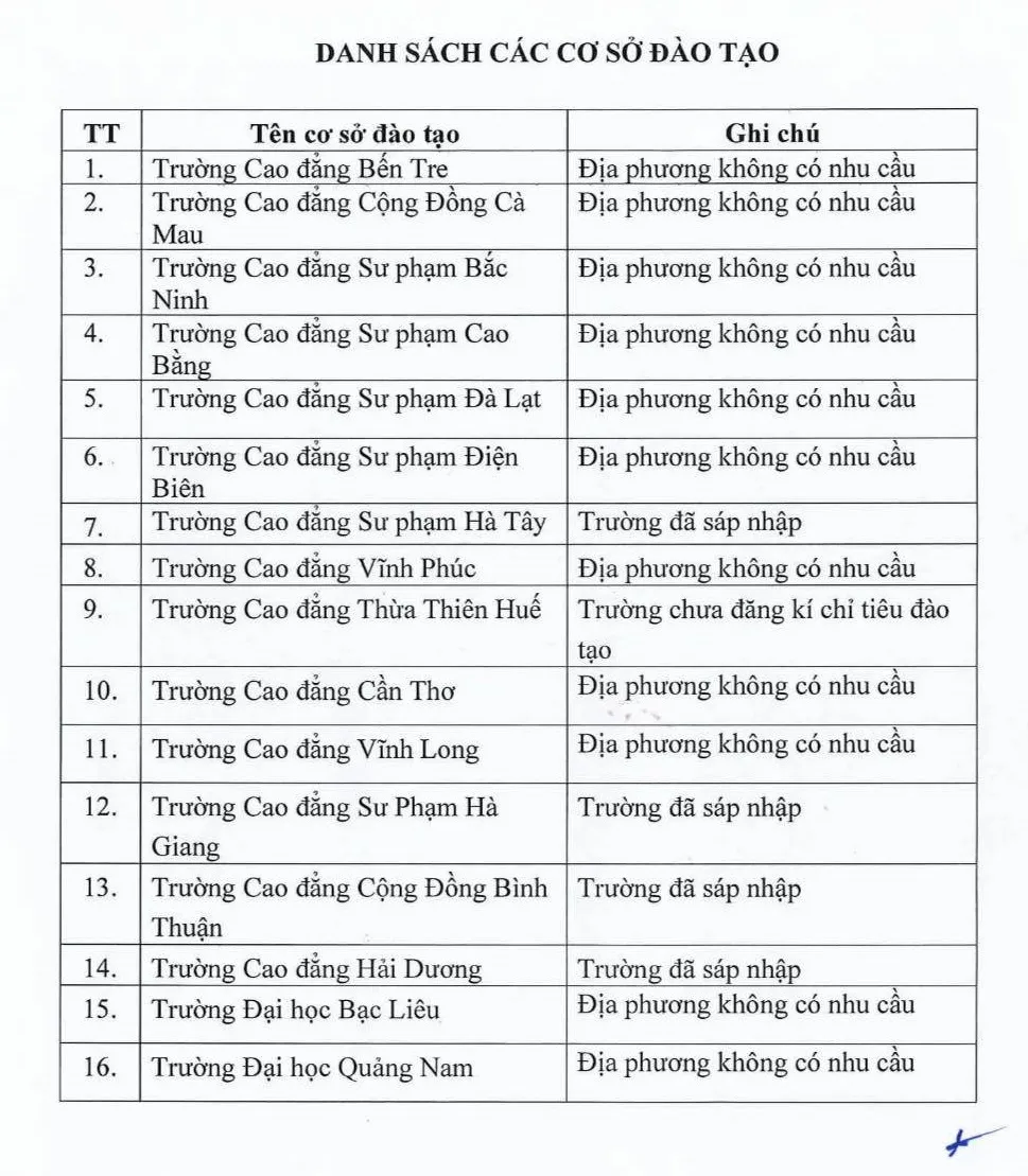 Danh sách 16 cơ sở đào tạo không tuyển sinh ngành sư phạm năm 2023 như sau: