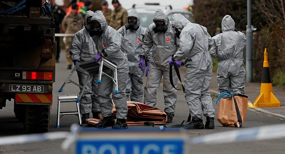 Cơ quan chức năng Anh khám nghiệm hiện trường vụ đầu độc ông Skripal hôm 4-3. Ảnh: AFP