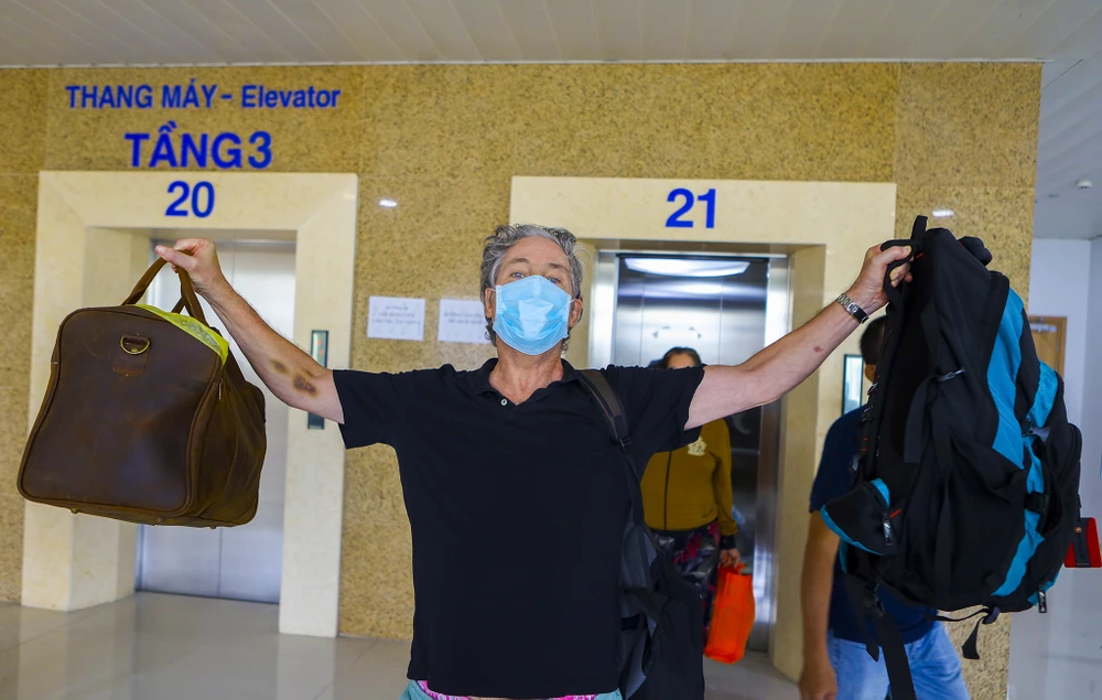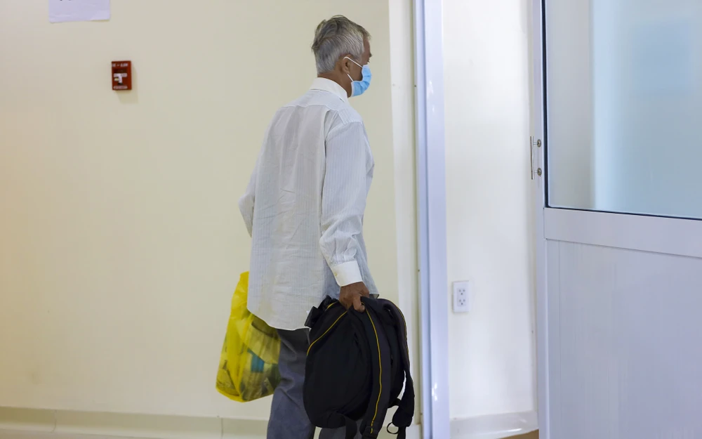 Ông Huỳnh Văn Ngộ (60 tuổi, ngụ phường 10, quận Tân Bình) phấn khởi trước giờ ra về, ông là một trong những bệnh nhân đầu tiên của bệnh viện chuyên điều trị bệnh nhân nặng, nguy kịch của TP.HCM.