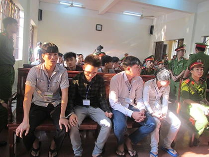 17 bị cáo gồm: Huỳnh Hồng An (20 tuổi ngụ Đồng Nai), Lưu Văn Phụng (19 tuổi ngụ Đồng Tháp), Nguyễn Trường Hải (25 tuổi ngụ Nghệ An), Ngô Sỹ Toàn (19 tuổi ngụ Nghệ An), Lê Văn Phong (19 tuổi ngụ Khánh Hòa), Võ Văn Huy (23 tuổi ngụ Bạc Liêu), Nguyễn Thanh Bình (25 tuổi ngụ Đồng Nai), Nguyễn Trường Giang (22 tuổi ngụ Thanh Bình, Đồng Tháp), Triệu Quốc Khải (28 tuổi ngụ Hậu Giang), Nguyễn Văn Tuấn (24 tuổi, ngụ tỉnh Bà Rịa – Vũng Tàu), Lê Thanh Khang (25 tuổi ngụ Đồng Tháp), Nguyễn Trường Giang (23 tuổi ngụ Tháp Mười, Đồng Tháp), Võ Hồng Thái (32 tuổi ngụ Đồng Nai), Hồ Xuân Hương (23 tuổi ngụ Nghệ An), Phạm Minh Trung (45 tuổi ngụ Đồng Nai), Đỗ Văn Phương (26 tuổi ngụ Đồng Nai), Nguyễn Thành Liêm (22 tuổi ngụ Kiên Giang) đều bị VKS huyện Nhơn Trạch truy tố về tội gây rối trật tự công cộng.