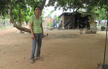 Chị Bạc và mảnh đất đã mua 17 năm nhưng bị chủ cũ chiếm lại. Ảnh: HỒNG MINH