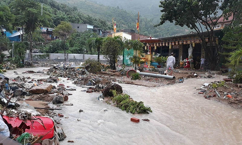 Nhiều khu vực ngoại thành Nha Trang ngổn ngang sau mưa lũ, sạt lở.