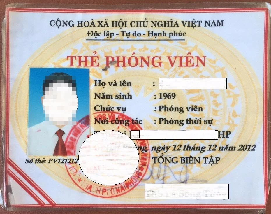 Thẻ phóng viên Công an thu giữ từ ông Đ.T.B - qua test nhanh ông này dương tính với ma túy. Ảnh CTV CHÂU THÀNH