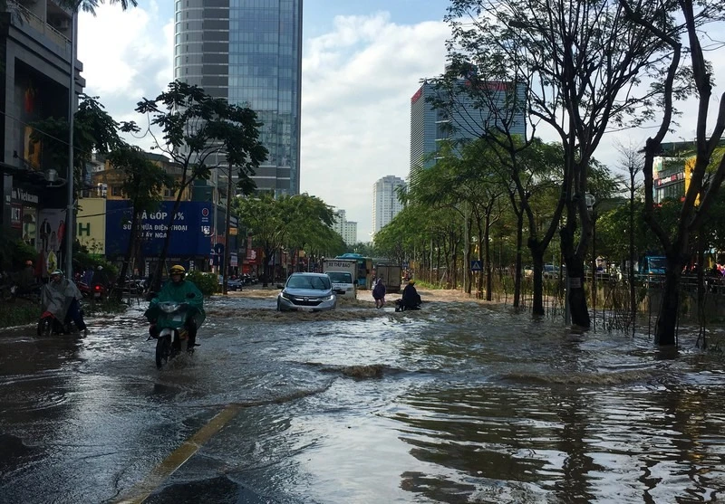 Trận mưa lớn đầu giờ chiều 3-3 tại Hà Nội khiến một số điểm bị ngập cục bộ, trong thời gian ngắn. Ảnh: Facebook