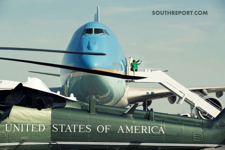 Tổng thống thường xuyên sử dụng một trong hai máy bay phản lực Boeing 747-200B được thiết kế đặc biệt. Hai máy bay này giống nhau như đúc, với độ cao bằng một tòa nhà sáu tầng.