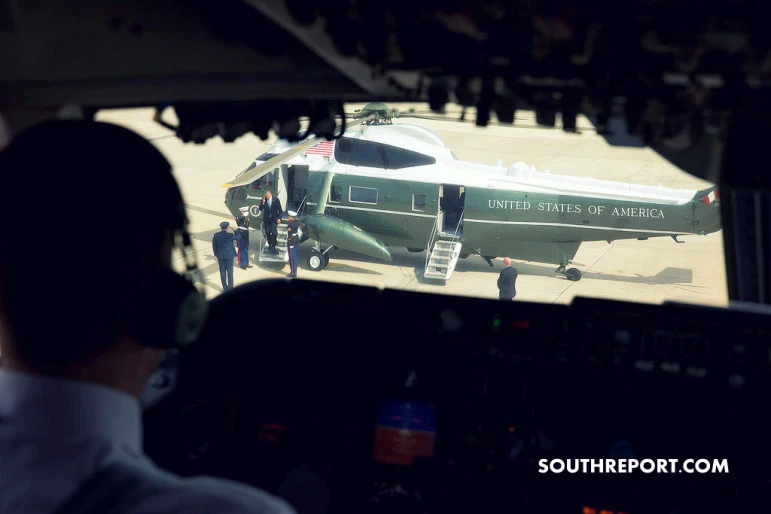 Mỗi chuyến bay Air Force One là một hoạt động quân sự. Phi hành đoàn phải kiểm tra kỹ càng máy bay và đường băng trước mỗi chuyến bay. Khi đến thời gian cất cánh, trực thăng Marine One sẽ đưa tổng thống từ Nhà Trắng đến Căn cứ Không quân Andrews.