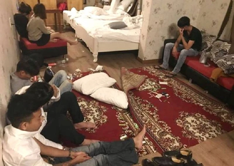 18 thanh niên thuê khách sạn để sử dụng ma túy.