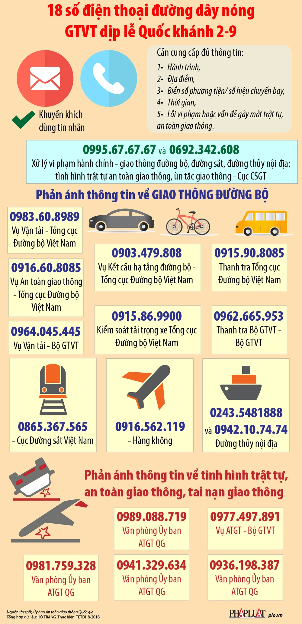 18 số điện thoại đường dây nóng GTVT dịp lễ Quốc khánh 2-9