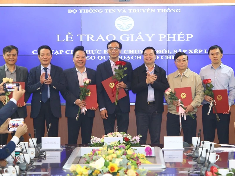 Chiều 4-3, tại Hà Nội, Bộ TT&TT đã tổ chức lễ trao giấy phép cho các tạp chí thực hiện chuyển đổi, sắp xếp lại theo quy hoạch phát triển và quản lý báo chí toàn quốc đến năm 2025. Theo đó, 18 tạp chí thuộc 18 tổ chức hội được cấp phép đợt này và có hiệu lực từ ngày 1-4.