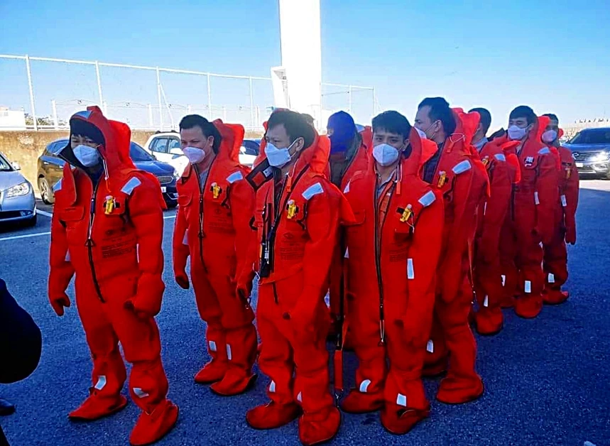 17 thuyền viên người Việt trên tàu Huoei Crystal bị nạn vùng biển giáp ranh giữa Nhật Bản, Hàn Quốc và Triều Tiên được cứu, sức khỏe ổn định và tàu của Nhật, Hàn Quốc, Triều Tiên đang tìm một thuyền viên mất tích. Ảnh Gia Khải.
