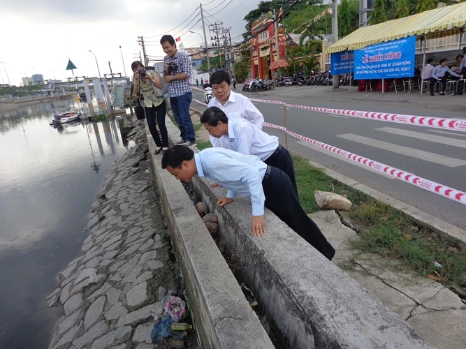 Trước khi diễn ra lễ khởi công, ông Bùi Xuân Cường, Giám đốc Sở GTVT, đã tiến hành kiểm tra thực địa cùng các cán bộ Sở GTVT và khu quản lý đường thủy nội địa.