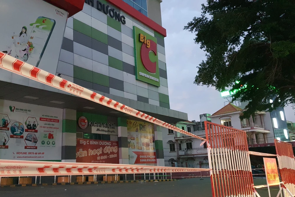 Chiều tối ngày 19-6 toàn bộ Big trên Đại lộ Bình Dương bị phong tỏa. Ảnh: LA