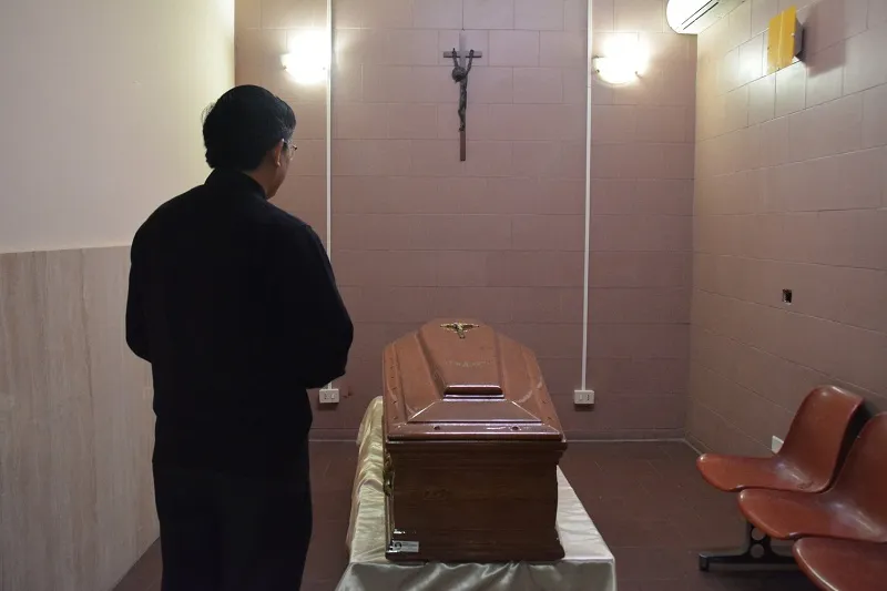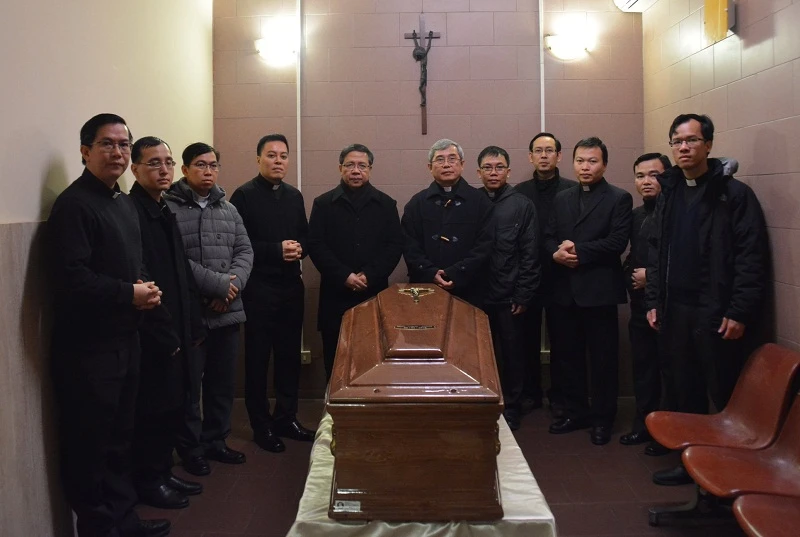 Quan tài đã được niêm phong để chuyển về Việt Nam - Ảnh: Salêdiêng Don Bosco Việt Nam