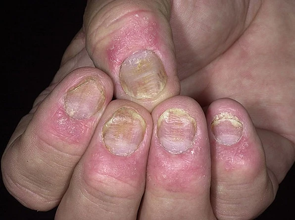 Tổn thương móng tay do bệnh vảy nến. Hình minh họa.