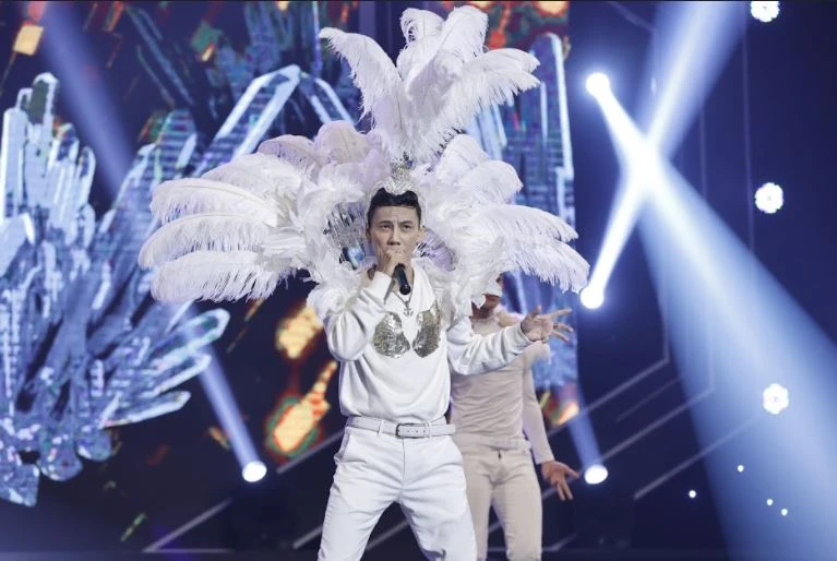 Khánh Trần Rio “chơi lớn” thể hiện khả năng vũ đạo khi đang khoác trên mình bộ cánh lông vũ khá cầu kỳ.