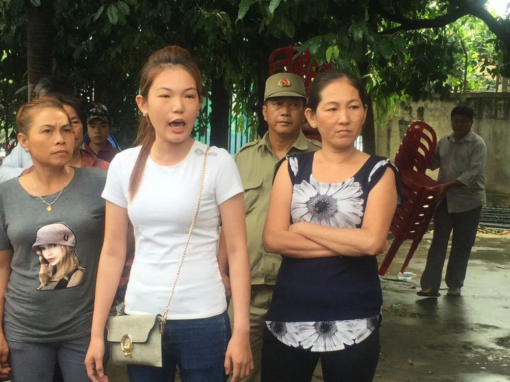 Mẹ một cháu bé là người bị hại (áo vàng) bức xúc về mức án.
