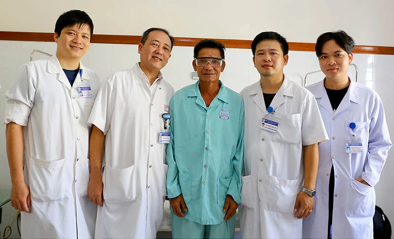 Bệnh nhân được ghép giác mạc thành công (thứ ba từ trái sang). Ảnh: THƯỢNG HIỂN